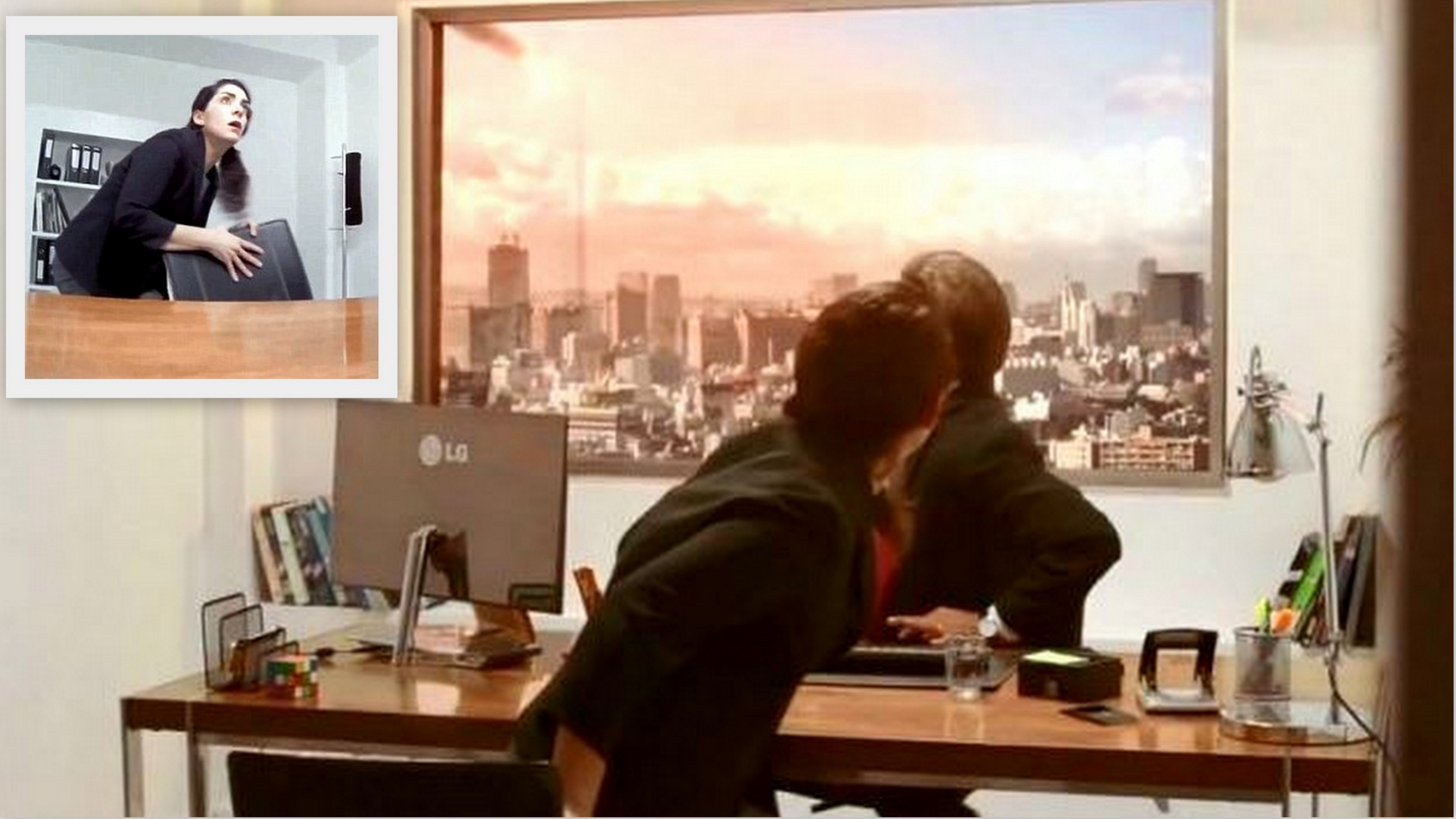 Tak presne takýto scenár pripravila firma LG pre štyroch nič netušiacich uchádzačov, dvoch mužov a ženy a ich reakcie si nakrútili a použili v bombastickej reklame na nový LG televízor s ultra vysokým rozlúšením. Kombináciou obrazu a zvuku totiž dokázali tak imitovať koniec sveta, že uchádzači tomu uverili. Vytvorili falošnú kanceláriu a miesto okna umiestnili do pozadia televízor s obrazom panorámy mesta a simuláciou jeho totálneho zničenia.