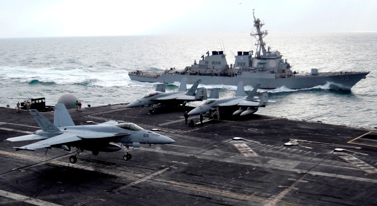 Zaujímavé je, že prieskum absolvujú stíhačky F-18 a nie žiadne prieskumné stroje. "Cieľom nie je sledovať, ale dať o sebe vedieť," povedal zdroj z Pentagonu.