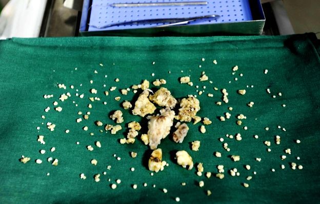 Museli použiť dlátko a kladivko. "Akonáhle sme otvorili ďašno, začali z neho padať zúbky. Vyzerali ako malé biele perly. Napočítali sme ich 232," popísala Indka zdĺhavú operáciu, ktorej asistovali ďalšie tri zdravotníčky.