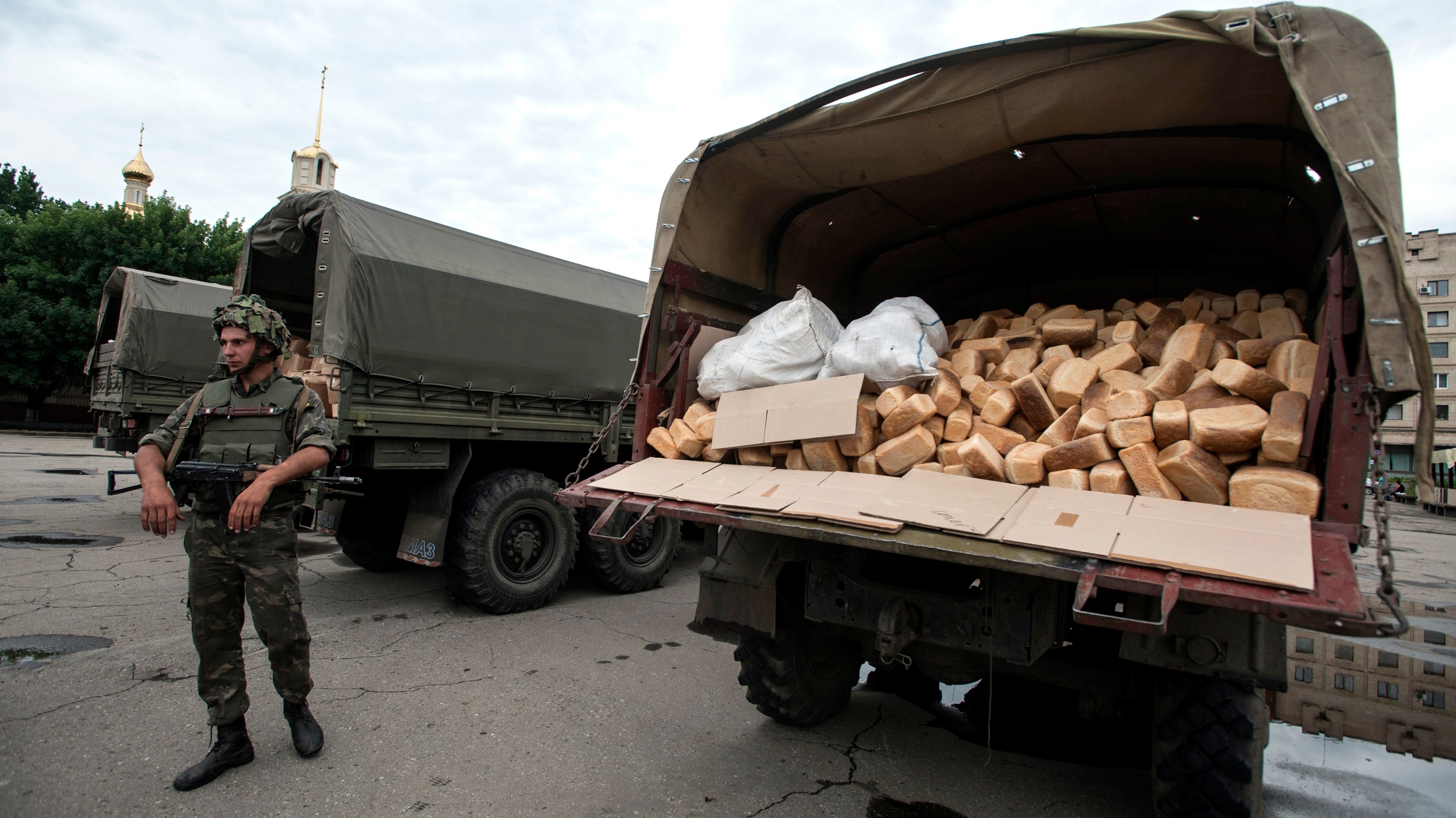 Konvoj vozidiel smeruje do mesta Starobiľsk približne 100 km od mesta Luhansk, kde humanitárny náklad prevezmú pracovníci Medzinárodného výboru Červeného kríža a rozdelia ho medzi civilným obyvateľstvom regiónov, kde proruskí separatisti bojujú s ukrajinskou armádou.