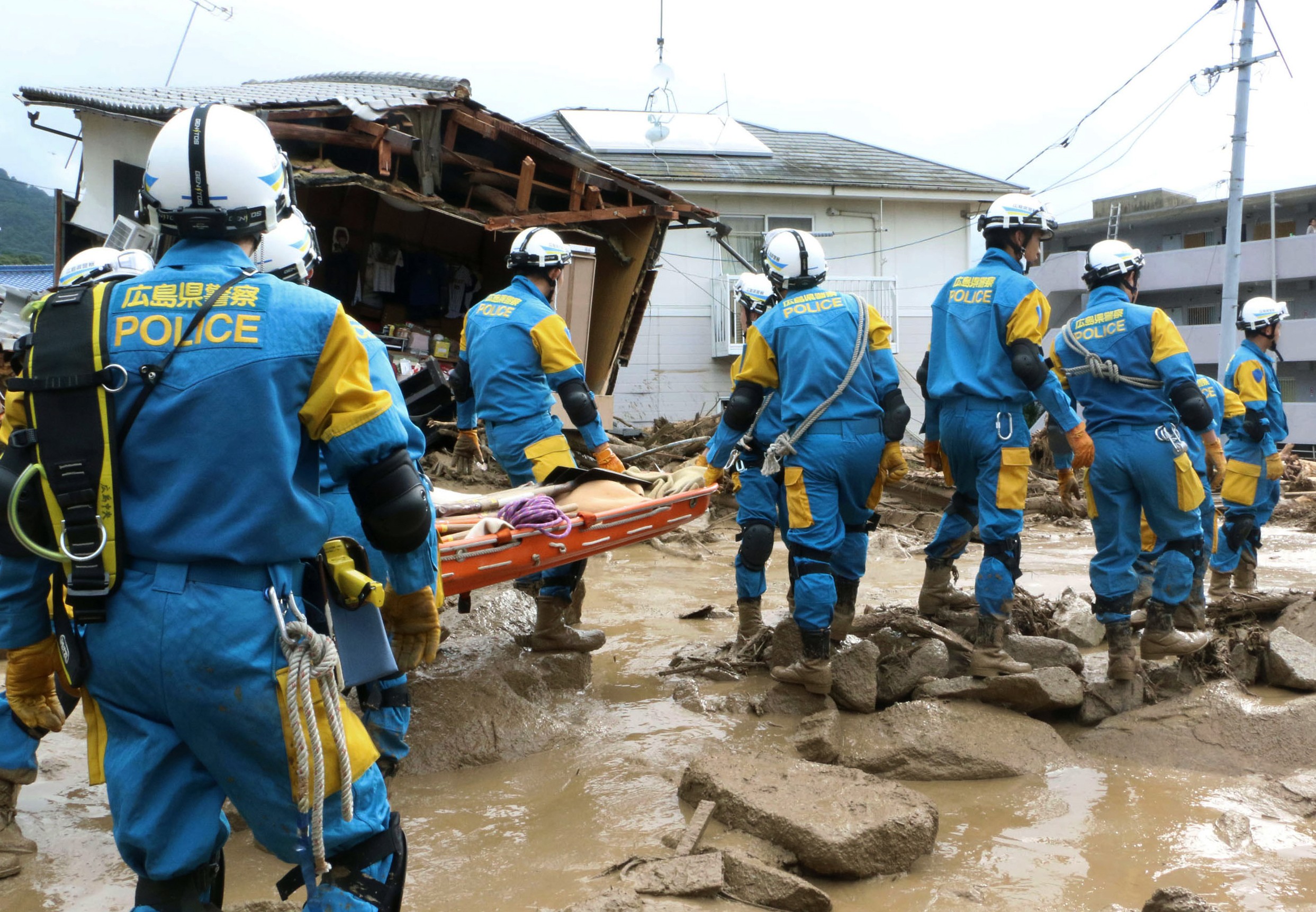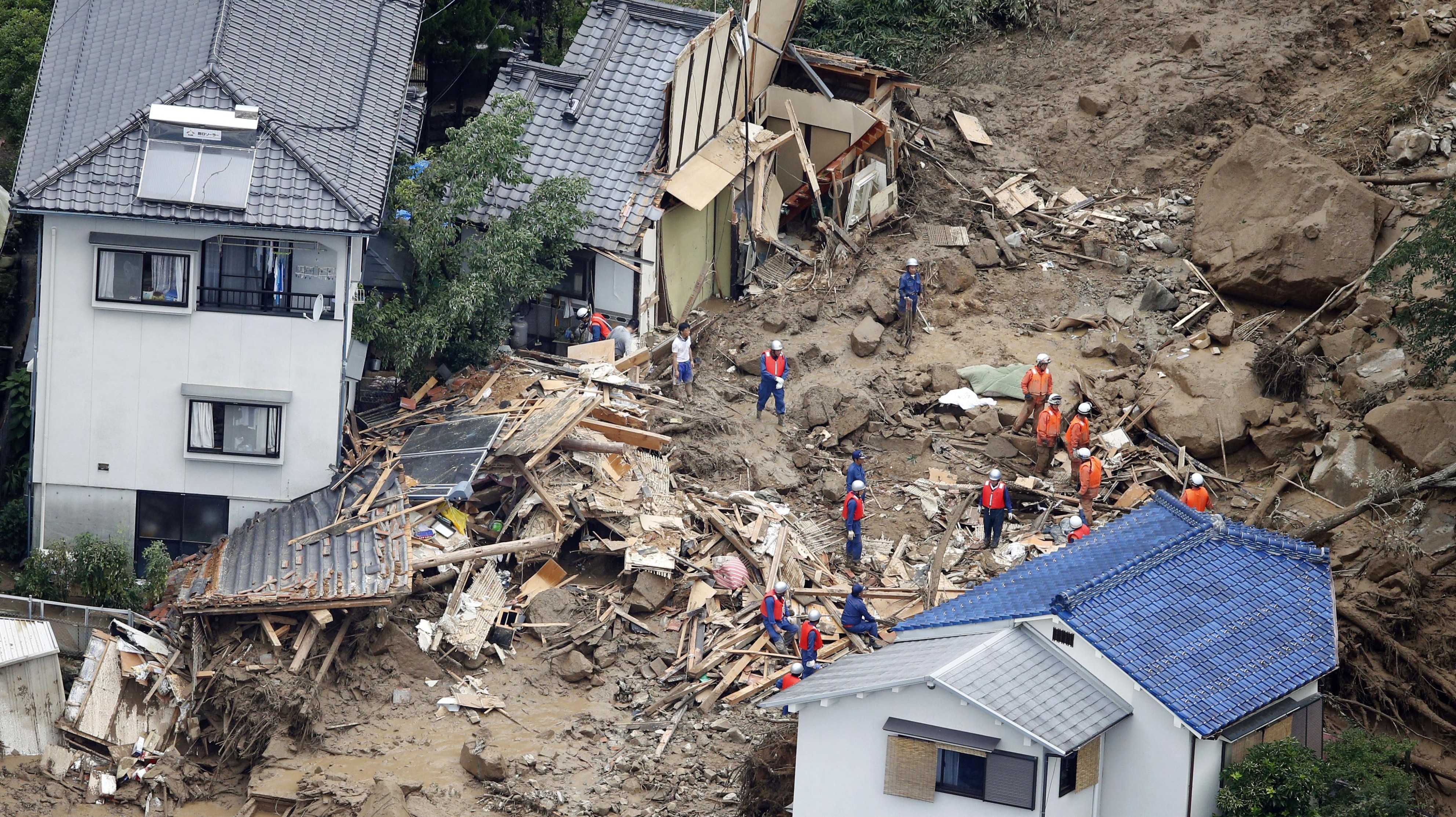 Väčšina domov v niekoľkých štvrtiach Hirošimy je postavených z dreva a valiaca sa masa pôdy ich doslova zrovnala so zemou.