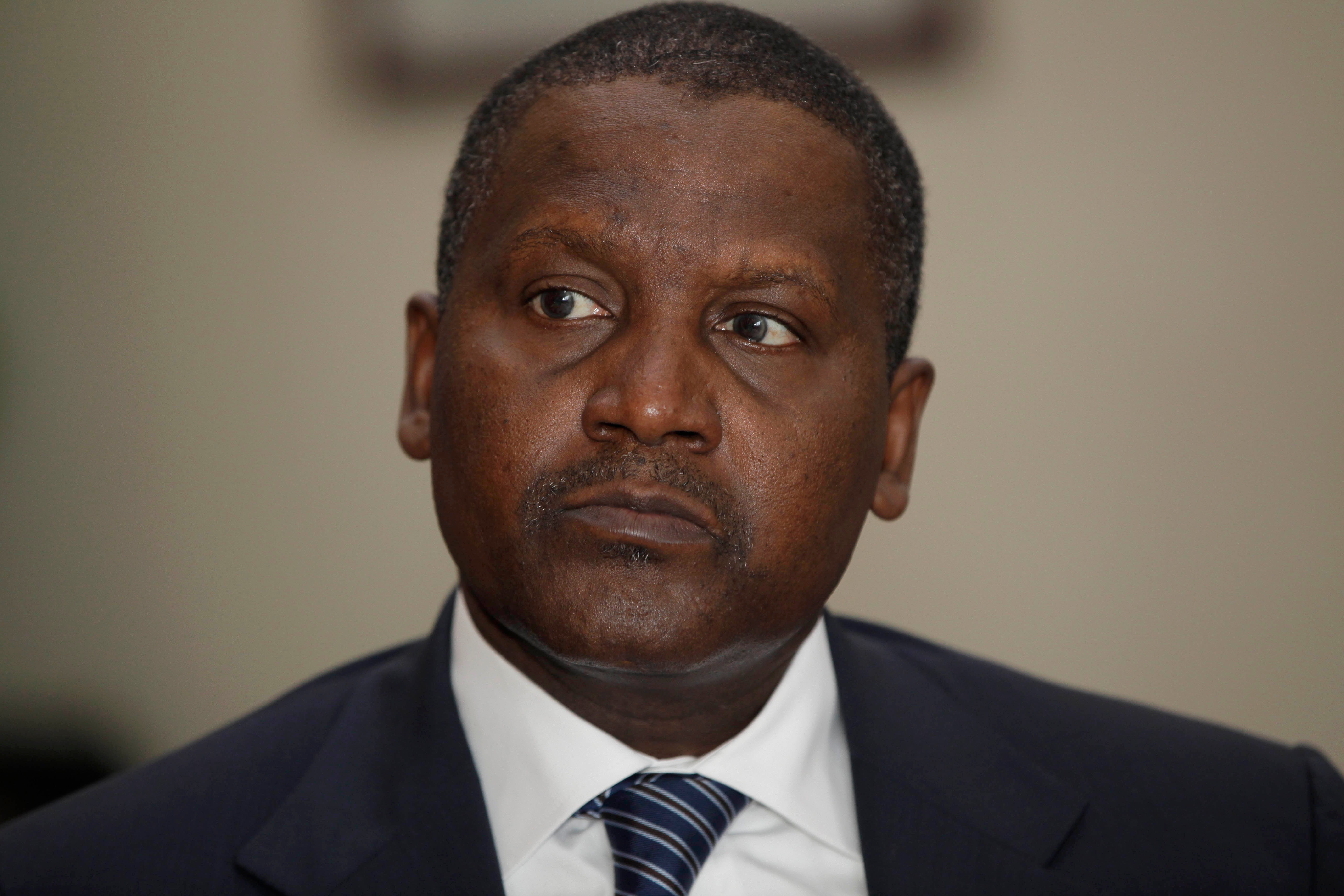 Nigérijský miliardár zarobil obrovské peniaze vďaka cementu a produkcii potravín. Má blízko k bývalému nigérijskému prezidentovi Olusegunovi Obasanjovi. Vďaka prezidentovmu zákazu dovozu cementu, ryže a cukru sa z Dangotovej spoločnosti stal prakticky monopol.