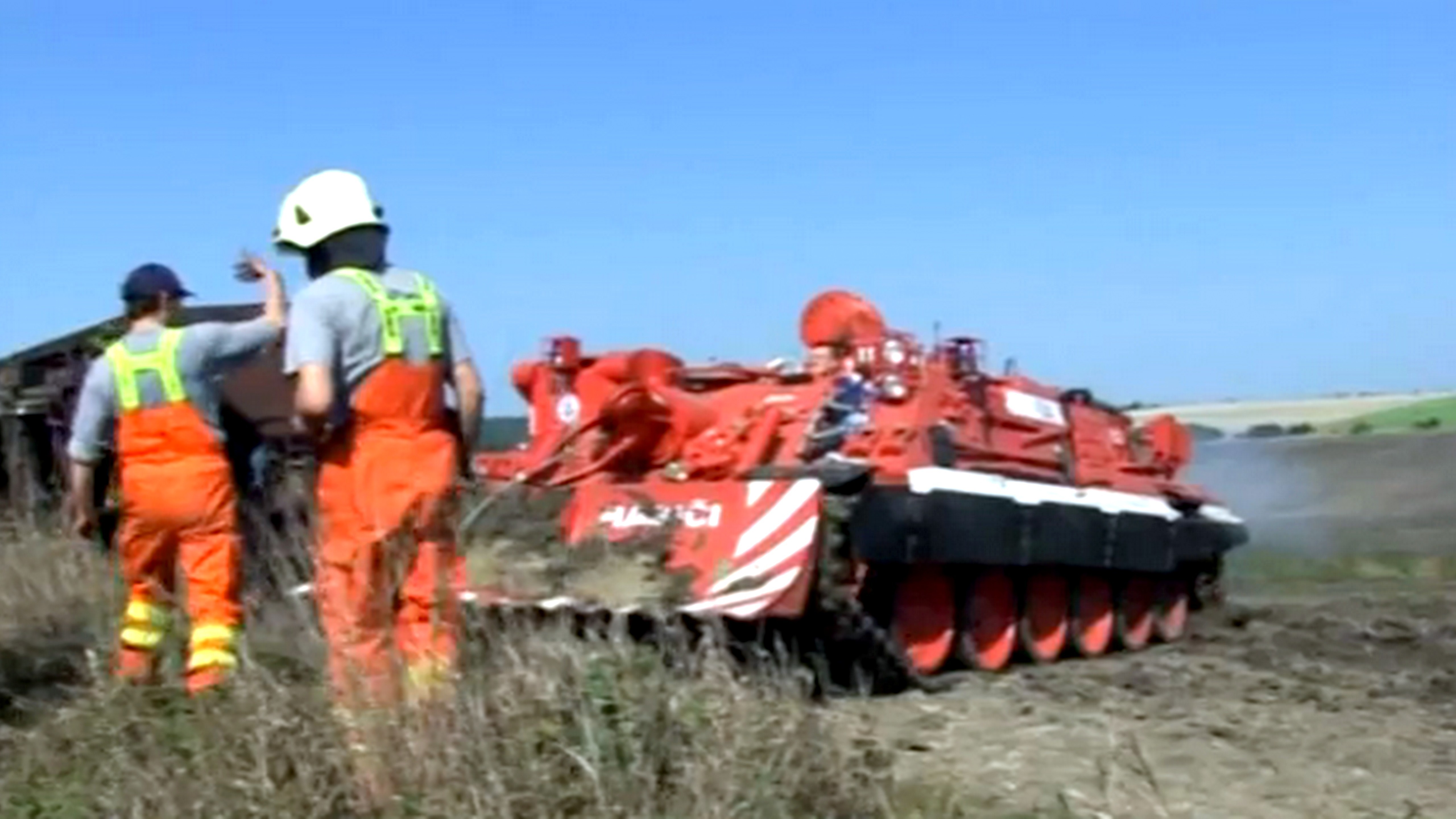 "Strhávame vagóny a odstraňujeme ich na úložisko, kde ich následne zlikvidujeme. Myslím, že celkovo osem vagónov sa podarí zachrániť," ozrejmil vodič tanku Roman Měchura.