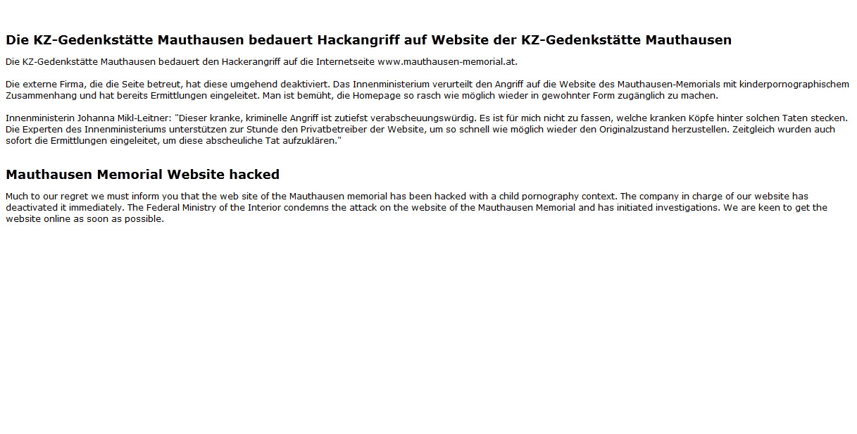 Hackeri si pre útok vybrali deň, na ktorý pripadá 70. výročie konca druhej svetovej vojny. V nedeľu sa v Mauthausene uskutočnia oslavy oslobodenia koncentračného tábora.