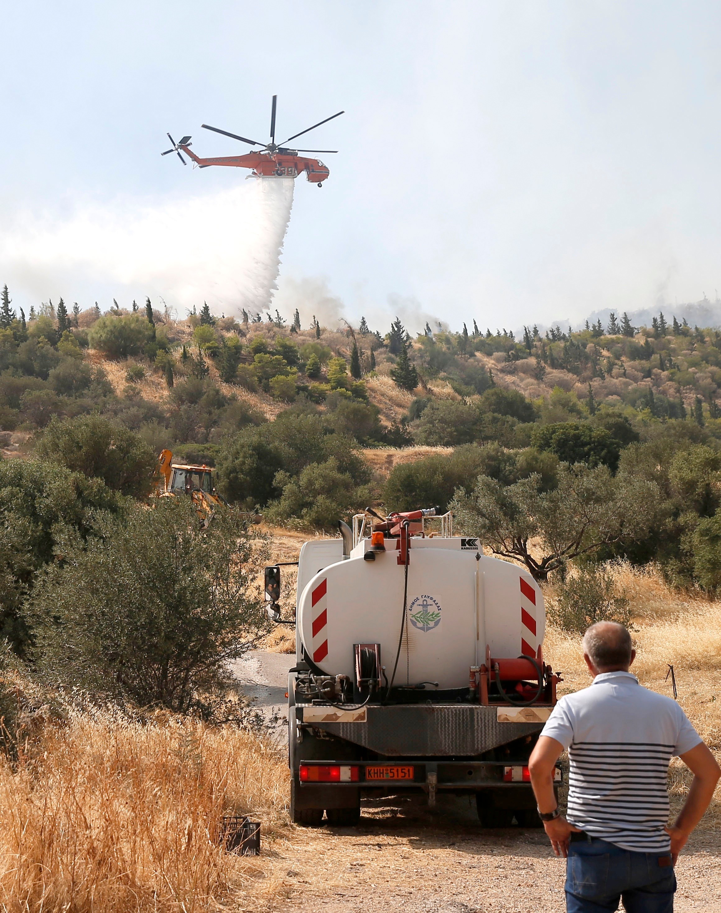 Na mieste je asi 30 hasičov, ktorí majú k dispozícii desať hasičských áut a jednu helikoptéru. Pomáhajú im aj miestni obyvatelia.