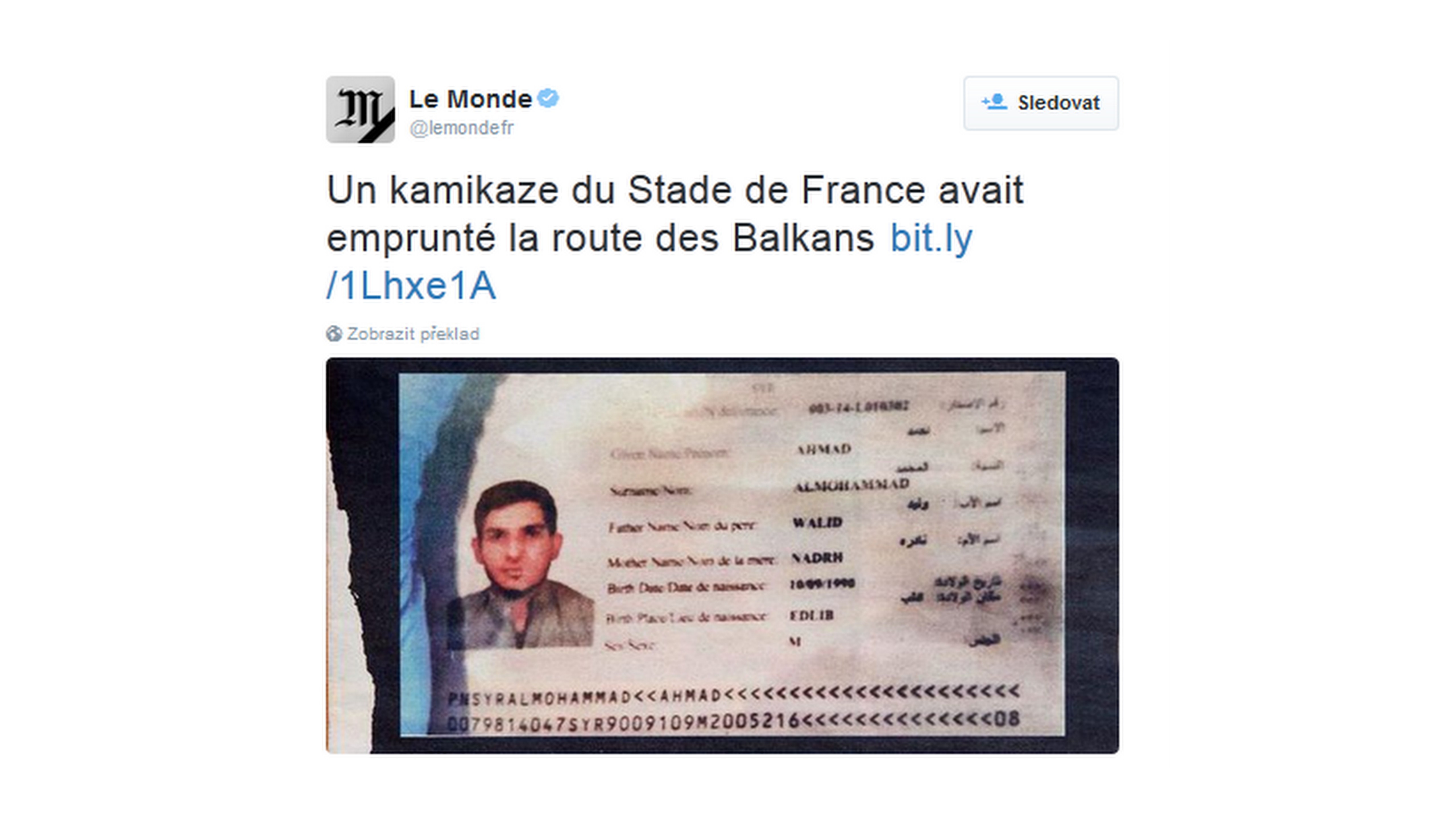 Neďaleko miesta útoku našli sýrsky pas na meno Ahmad Muhammad, ktorý patril 25-ročnému mužovi pôvodom zo sýrskeho Halabu. Pas podľa gréckych úradov použil utečenec, ktorý bolo zaregistrovaná pri vstupe do Grécka na začiatku októbra. Ten istý cestovný doklad potom použil jeden z migrantov, ktorého 7. októbra zaregistrovali úrady v srbskom Preševe. Nie je jasné, či je pas pravý a či nejako súvisí s útočníkom.