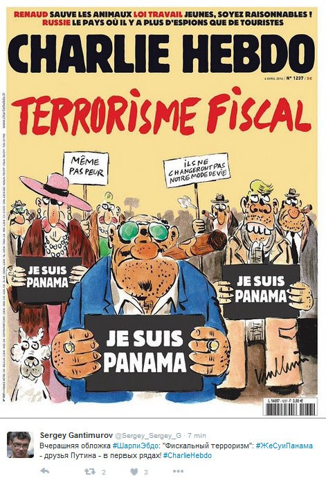 Na titulnej stránke najnovšieho vydania týždenníka Charlie Hebdo pod titulkom Fiškálny terorizmus nesú boháči transparenty, na ktorých je okrem "Je suis Panama" napríklad v preklade "Aj tak sa nebojíme" či "Nezmenia náš spôsob života".