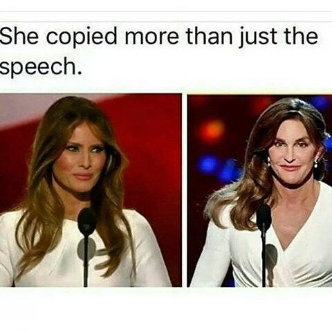 Na tejto koláži je napísané, že okopírovala viac, než iba prejav. Tá druhá žena je v skutočnosti muž - nevlastný otec Kardashianiek, z ktorého sa stala Caitlyn Jenner.