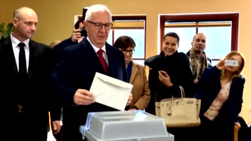 Kandidat na prezidenta CR Jiri Drahos pri volebnej urne