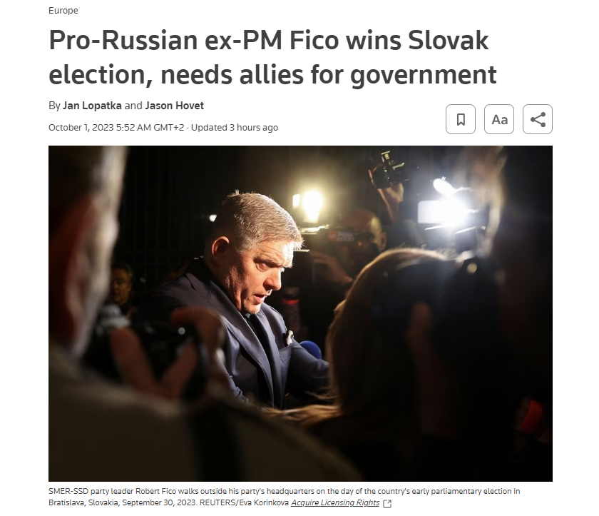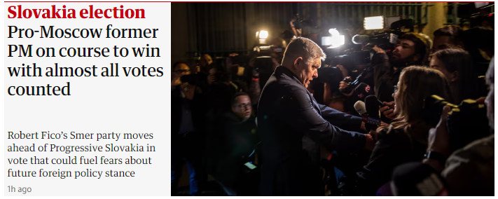 Voľby na Slovensku: Promoskovský bývalý premiér na ceste k víťazstvu s takmer všetkými spočítanými hlasmi (The Guardian)
