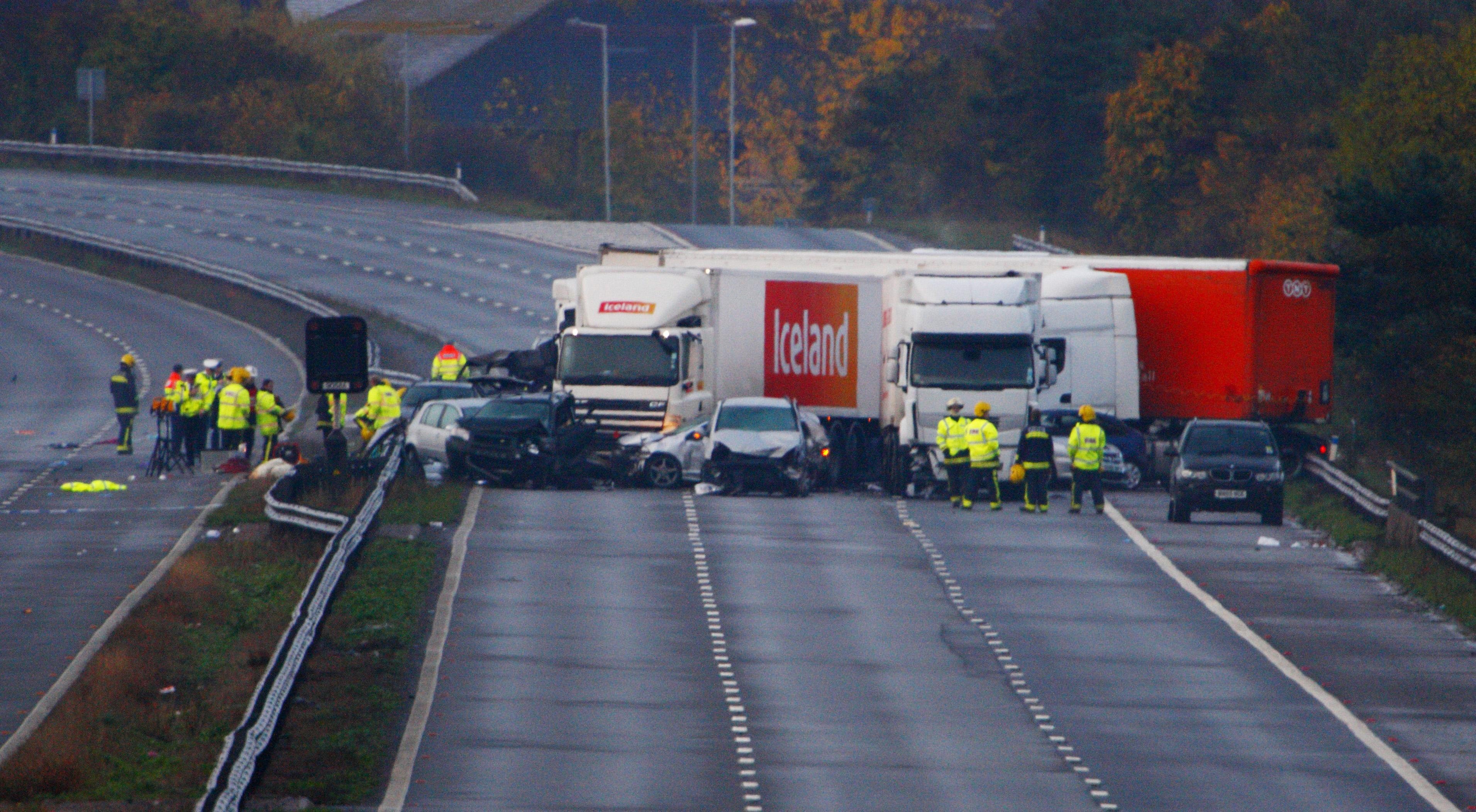 Príčina nehody na diaľnici v juhozápadnom Anglicku nie je známa. Podľa prvých správ v čase nehody silno pršalo a bola hmla. Účastníkmi nehody bolo dvadsať áut a šesť kamiónov. Podľa slov hasiča to bola najhoršia dopravná katastrofa, akú si v regióne Paul Seven pamätá. Anglická polícia potvrdila sedem obetí, obáva sa však, že počet sa môže ešte zvýšiť. Podľa denníka The Telegraph mohlo zomrieť až šestnásť ľudí.