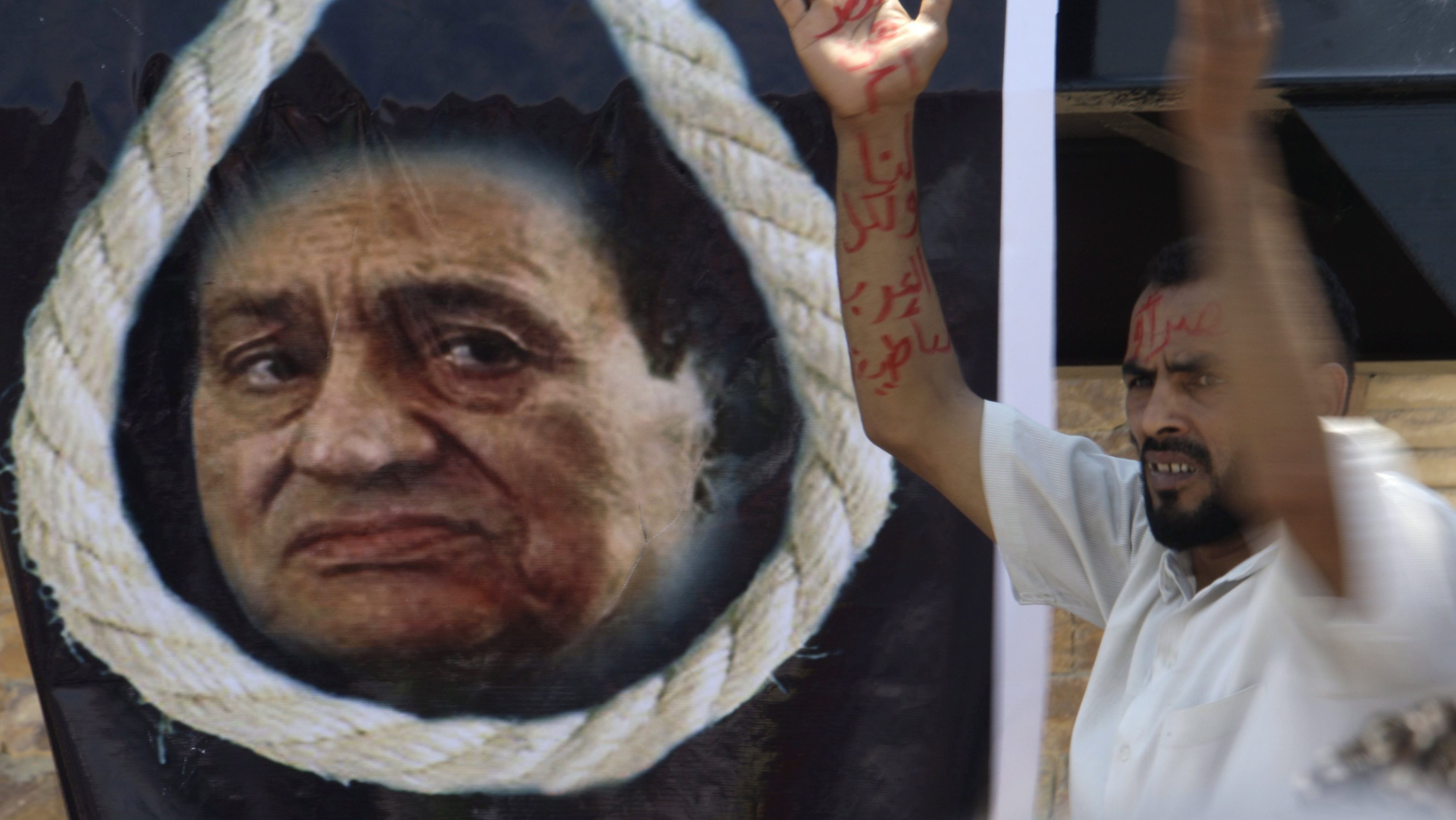 Podľa obžaloby bol exprezident "politicky a právne" zodpovedný za smrť viac ako 800 ľudí pri demonštráciách proti režimu na začiatku minulého roka. Hlavný prokurátor Mustafa Sulajmán pri zdôvodnení navrhnutého trestu poukázal na to, že Mubarak neurobil nič preto, aby zabíjanie zastavil, hoci o ňom vedel od svojich poradcov, či z televízie. Bývalý miniszer vnútra Adlí, ktorý je súdený spolu s Mubarakom, údajne na exprezidentov rozkaz povolili použitie ostrých nábojov.