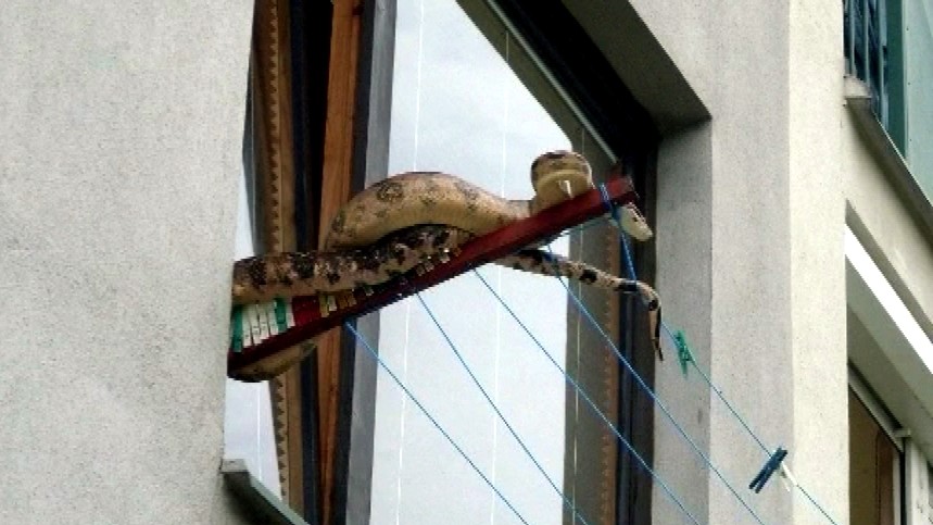 Ľuďom prechádzajúcim popri paneláku sa naskytol zaujímavý pohľad. Na sušiaku sa namiesto bielizne vyhrievala samička veľhada kráľovského. "To som teda bola vyvalená, celý činžiak sa na to díval, to nebol had, že polmetrový, to bol vyše metrový, to syčalo tam," uviedla obyvateľka bytovky.