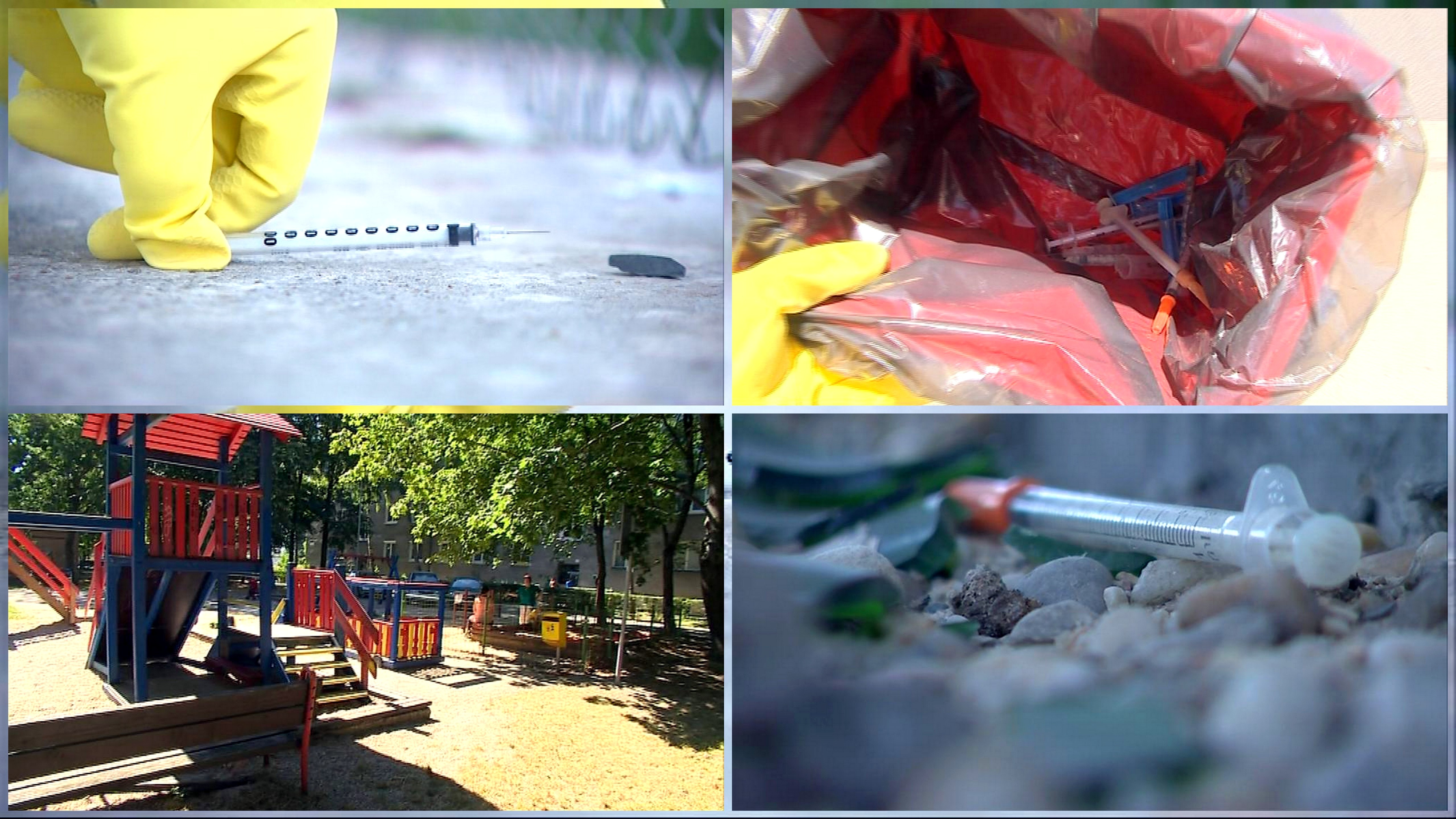 V Bratislavskej Petržalke je veľa miest, kde by ste bez väčších problémov našli striekačky po nezodpovedných narkomanoch. Dokonca aj tam, kde by ste ich nikdy nechceli ani vidieť a to na detských ihriskách. Pani Janka chodieva skoro každý deň so svojím 5 ročným vnúčikom na toto ihrisko. "Boli tu, už som videla nie jedenkrát," hovorí Romanova babka, pani Jana.