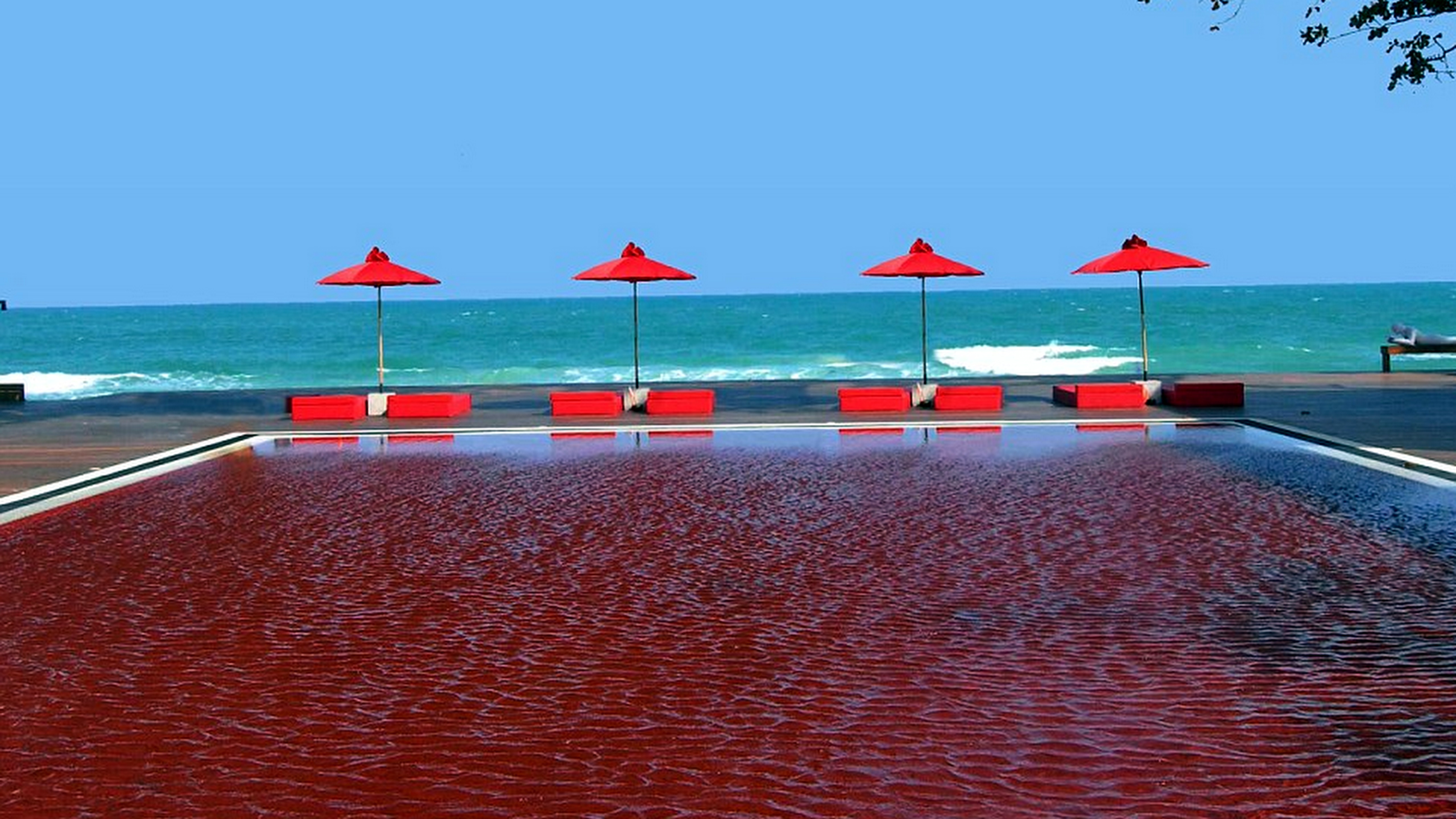 Výnimočný červený bazén sa nachádza v Thajsku na ostrove Koh Samui. Bazén pôsobí ako keby bola v ňom červená voda. Tento očný klam vytvárajú červené dlaždice, ktorými je bazén vydláždený.