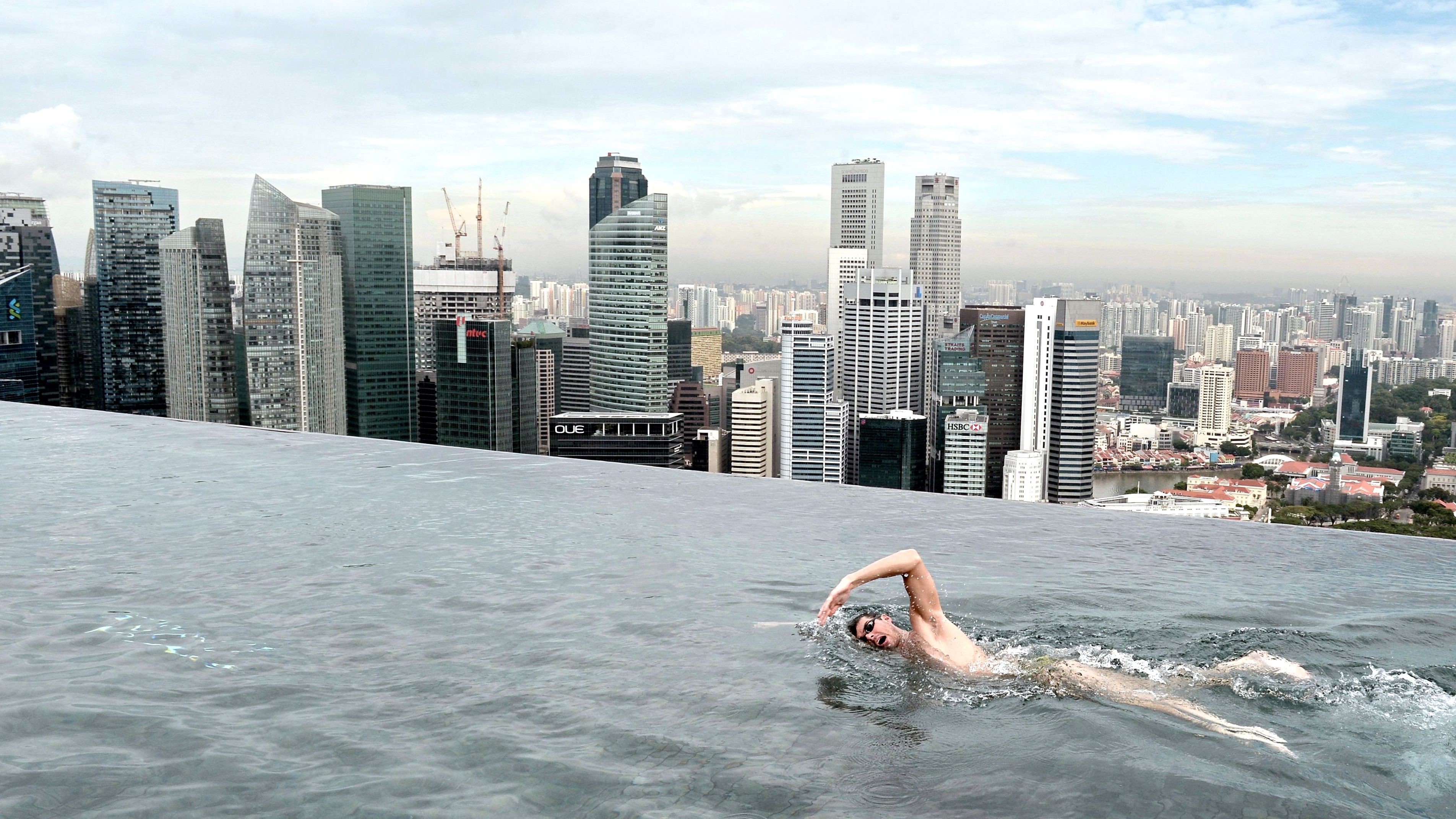Bazén s výhľadom na mesto? Nech sa páči, vitajte v Singapure. Bazén, z ktorého plavci môže sledovať panorámu mesta sa nachádza v hoteli na 57. poschodí.