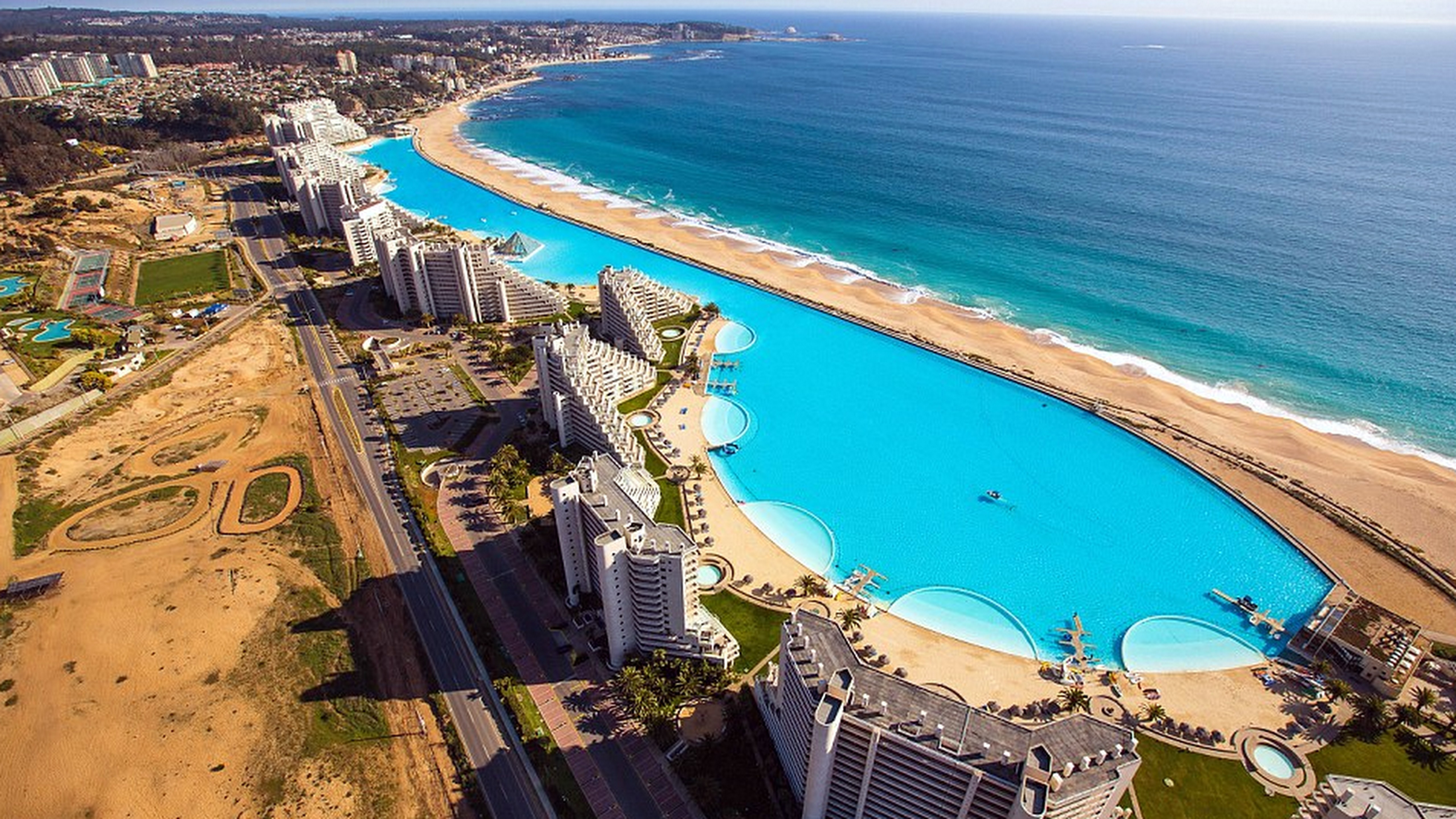 Bazén v čilskom San Alfonso Del Mar, ktorý sa nachádza niekoľko kilometrov od hlavného mesta Santiago je viac 1 013 metrov, osem hektárov a obsahuje 250 miliónov litrov morskej vody. Najhlbší bod má 35,1 metra.