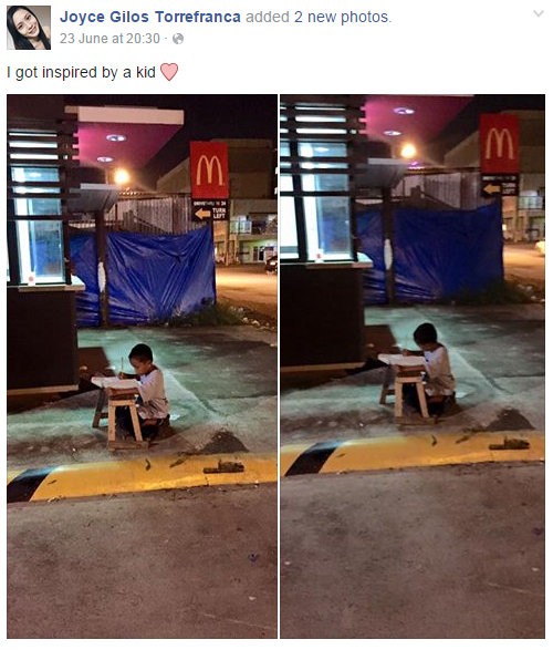 Fotografiu usilovného Daniela zverejnila na Facebooku 20 ročná študentka Joyce Torrefrance s komentárom: Inšpirovalo ma dieťa. Následne ju zdieľalo viac ako sedemtisíc ľudí a informovali o nej aj médiá.