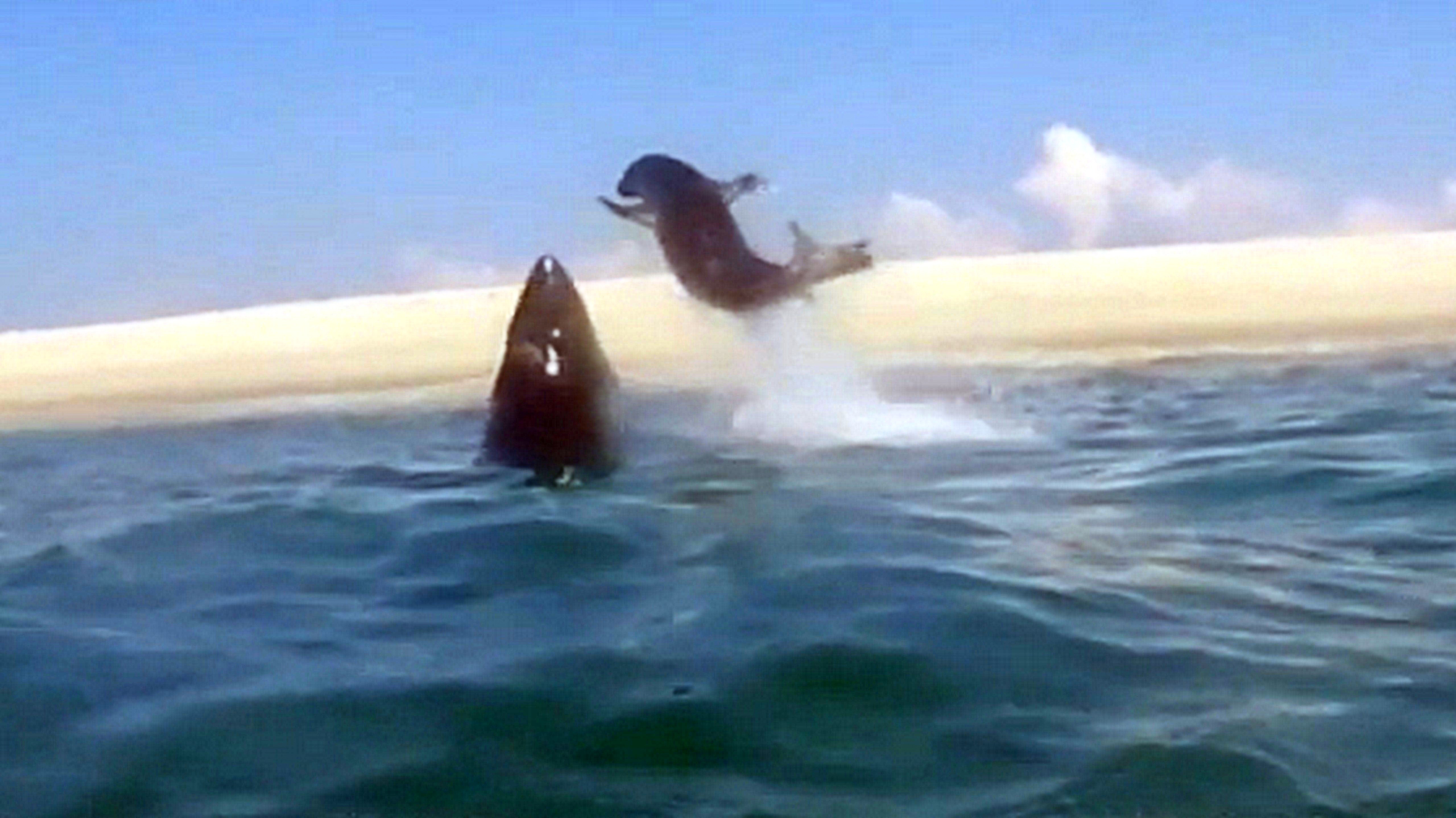 Dramatické video zachytáva predátora, ktorý sa náhle vymrštil nad hladinu s cieľom uloviť bezbranného tuleňa.